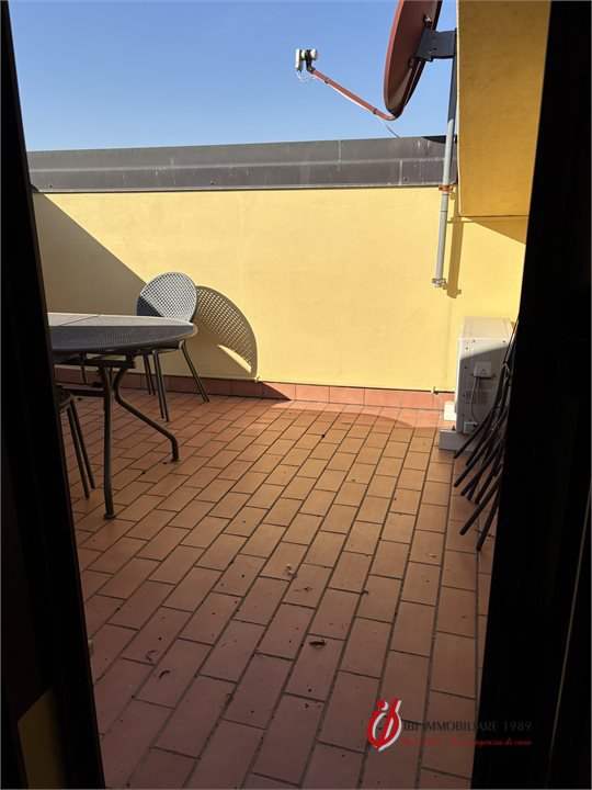 Un'opportunità imperdibile! In vendita, in una zona centrale comoda a tutti i servizi, un elegante appartamento con sottotetto all'ultimo piano di un piccolo complesso residenziale di sole sei unità. L'abitazione, in ottime condizioni, si sviluppa su due livelli: al secondo piano troviamo un accogliente ingresso, un luminoso soggiorno con cucina a vista e balcone, un comodo corridoio, una camera singola, una camera matrimoniale con balcone e un bagno. Al piano superiore, un'ampia stanza di 8 mq, ideale come terza camera da letto o studio, con un ampio terrazzo. Al piano interrato, una cantina e un grande garage singolo.